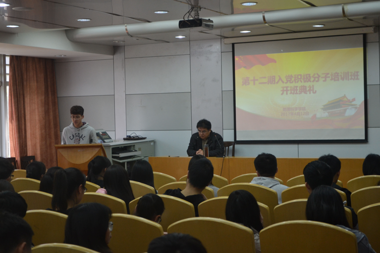 4月12日下午,beat365英国官方网站第十一期党校培训班开班典礼在报告厅隆重举行。本次党校培训班旨在加强学员们对于党的了解和认识,提高他们的政治素养,为后期党员发展工作奠定基础。院党总支书记盛明老师受邀出席并做开班动员。
