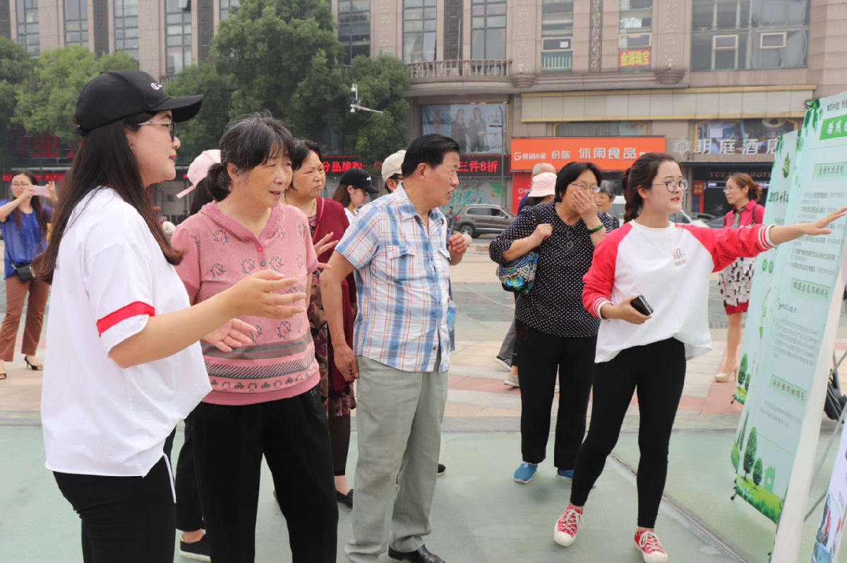 活动分为展报展览和现场宣讲两个部分。展报分为环境保护的形式与政策、垃圾分类要求、塑战速决和长江江豚保护四个主要内容来普及环保知识;在现场宣讲部分,同学们通过对广场附近的居民和游客进行展报内容讲解和交流、收集调查问卷等形式,了解到更多人对于节约资源和环境保护方面的认识和看法。同时,还向民众发放了垃圾分类手册、垃圾袋、垃圾桶和环保袋等环保用品。