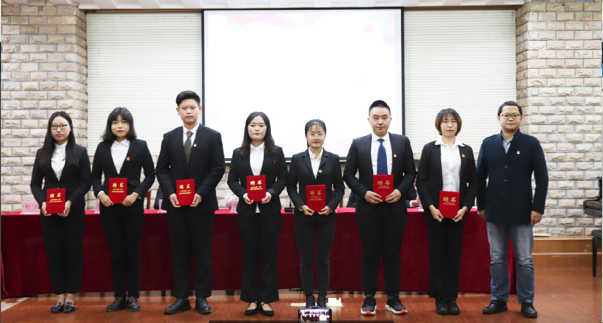 会上,盛英豪与朱振浩就本院上一届团委学生会、研究生会的发展做出介绍及总结,并对今后的团委学生会、研究生会工作提出建议,希望新一届成员能立足于过去,谋求更好的发展。杜月代表全体团委学生会作表态发言,并带领新一届团委学生会宣誓,牢记使命,志存高远,为学院的未来艰苦奋斗。侯伶俐与秦琪相继对团委学生会和研究生会进行部门展望,并鼓励同学们勇于展示自我,充分发挥自身优势,为学院的发展贡献力量。嘉宾老师给新一届团委学生会干部及班助颁发聘书并合影留念。学院党总支副书记、副院长王夏强要求团学干部要以身作则,兼顾好学业和工作,努力发挥集体的作用,争取人人学有所得,学有所成。