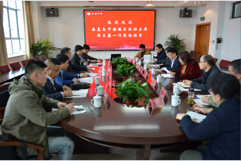 4月11日上午,秦皇岛市海港区政协主席郭占鑫一行来我校访问交流,副校长董正超接待了来宾。beat365英国官方网站党委书记潘晴雯主持了交流会,学院领导班子成员和相关系室负责人参加了交流。