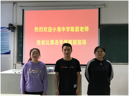 第八届江苏省师范生基本功大赛即将召开,beat365官网两位参赛选手正紧锣密鼓地进行赛前训练。10月10日下午,我们有幸请到国家级、省级青年教师讲课比赛获奖选手——南通市小海中学陈箭老师,到beat365官网为两位选手做模拟授课现场指导。
