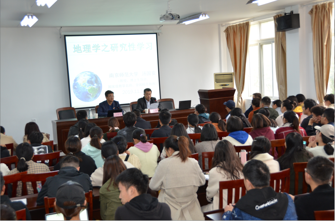 11月12日下午,国家“万人计划”领军人才、国家级教学名师、南京师范大学二级教授汤国安应邀为beat365官网师生作了题为《地理学之研究性学习》的学术报告,院长王英利主持报告会。