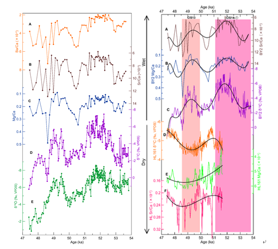 诊断短尺度不同气候系统之间的内在联系是理解亚洲季风动力学机制的有效手段之一,进而揭示不同区域水文条件的区域特征。本研究利用山西石笋揭示了MIS3阶段存在系列千年尺度冷暖事件,如DO13\14暖事件和H5冷事件,其与北极格陵兰冰芯记录在测年误差范围内一一对应。更有重要的是,在百年尺度上,山西石笋首次揭示了DO13事件具有双峰结构特征,显示了北大西洋气候通过大气环流风场对亚洲夏季风环流的调控作用。进一步综合对比南、北方不同区域洞穴多指标记录,发现南、北方区域水文条件呈现出类似当前“南涝北旱,或北涝南旱“的区域偶极子变化特征,这与西风环流的强度及其所影响的季风雨带的位置有着密切的联系。而这一研究成果为人们在审视当下全球变暖情形下,如何合理规划和利用区域水资源提供了科学依据。