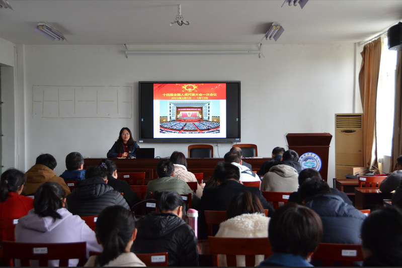 3月29日,beat365英国官方网站召开全体教职工大会,学习贯彻2023年全国两会精神。