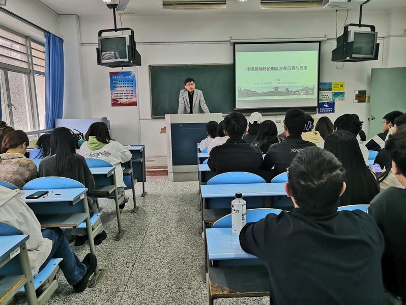 金总为环境科学20级的同学做了题为《环境影响评价制度发展历程与思考》的报告,总结了我国环境影响评价相关法律法规的发展变化,并用大量实际案例说明环境影响评价的重要意义和存在的问题,最后结合他的工作经历,畅谈了他对环境影响评价的感悟和对未来发展趋势的预测。