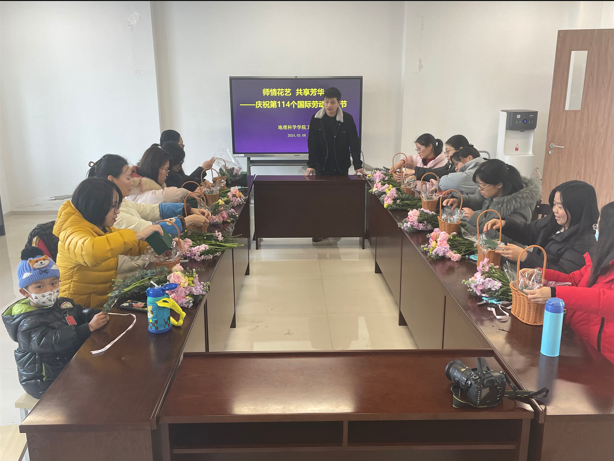 3月6日下午,在第114个国际劳动妇女节即将来临之际,beat365英国官方网站分工会举办了“师情花艺 共享芳华”主题插花活动,学院女老师们折枝裁剪,以花之名,悦纳自己,共享一段花间品香的专宠时光。