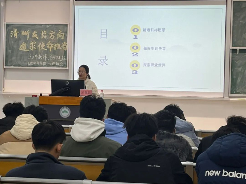 12月4日下午,由邱佩钰老师主讲的以“清晰成长方向,追求使命担当——职业通路初探”为主题的心理讲座在39A-205成功举办。邱佩钰老师在讲座中指出,职业使命感是导致大学生产生就业问题的重要原因之一,教导学生们要有更加清晰的目标,同时也为他们提供了相应的解决方法:目标设立量化,明确时间限制。最后,邱老师鼓励同学们要积极探索职业世界,拓展职业视野,收集职业信息。通过本次活动,同学们表示对自己未来的职业规划和成长方向有了更加清晰的认识和了解,也相信自己未来能够在遇到困难时管理好自己的心态和情绪。