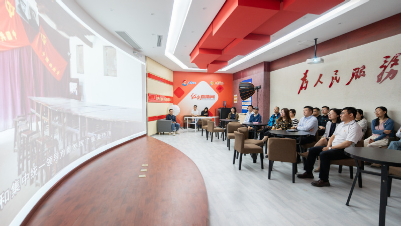 幸福街道窑洞学堂还原了红色经典场景,上圆下方的窗棂、串串红辣椒、斗笠、马灯、简朴的木桌椅……处处体现着红色精神,再现了延安、西柏坡窑洞经典课堂。本次学习会创新性地将党纪学习教育课堂搬到窑洞,以沉浸式体验、实境式教学,让中心组成员们在代入感极强的学习体验中接受了思想洗礼。学习会上,全体成员集中观看了专题教育片《严于律己的楷模——周恩来》,交流了党纪学习心得。潘晴雯回顾总结了学院党纪学习教育开展情况,并对下阶段的学习教育做了布置。