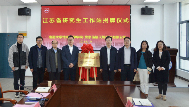 11月21日上午,我校与北京佳格天地科技有限公司共建的“江苏省研究生工作站”举行揭牌仪式。校党委常委、副校长施佺,佳格公司华东地区总经理杨锐共同为工作站揭牌。