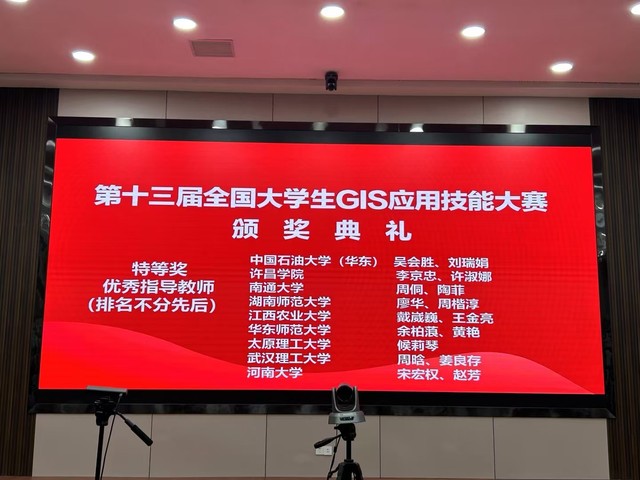 2024年11月23日至24日,第十三届全国大学生GIS应用技能大赛在兰州交通大学顺利举行。我校beat365英国官方网站本科生陈鲁煜(地理信息223)、吴王涵(地理信息231)、茅伟涛(地理信息231)和陆琳(地理信息232)荣获特等奖,指导老师周侗、陶菲荣获特等奖优秀指导教师奖项。