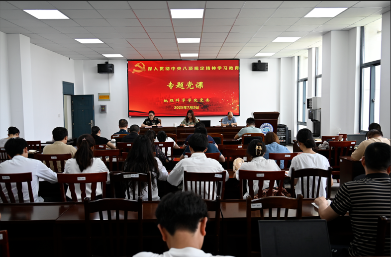 为进一步推进深入贯彻中央八项规定精神学习教育走深走实,以作风建设新成效开创学院高质量发展新局面,7月2日,学院召开党员大会,党委书记潘晴雯为全体党员做题为《恪守八项规定,筑牢担当根基》的专题党课。学院党委副书记龚一文主持。