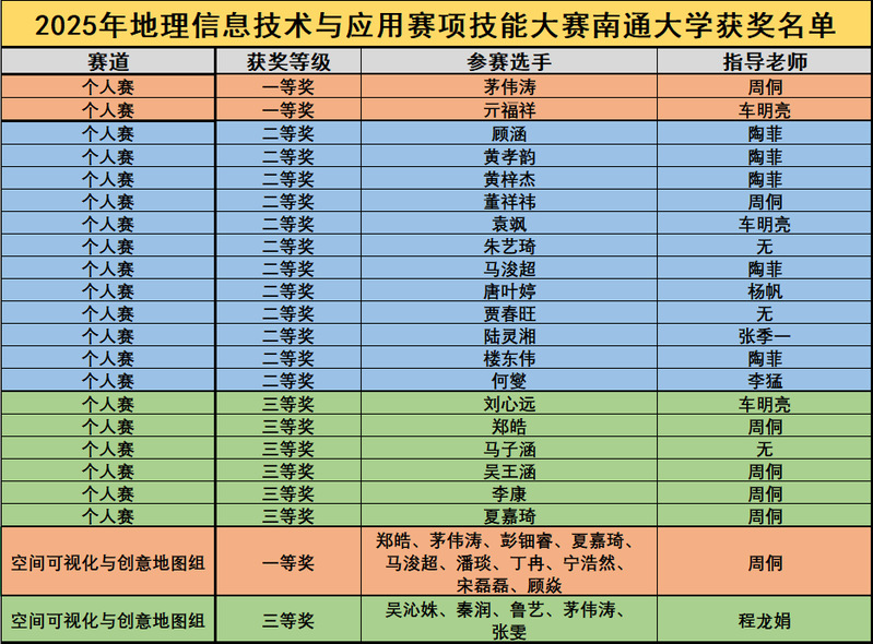 本届大赛吸引了来自全国近400所院校和超过200家政府和企事业单位的350余组团队,参赛人数突破5500人,赛事规模和影响力再创新高。经过激烈角逐,beat365官网学子共取得一等奖3项、二等奖12项、三等奖7项的优异成绩,展示了扎实的专业能力。学院始终秉持“以赛促学”理念,将学科竞赛作为人才培养的重要基石,将不断深化教育教学改革,将学科竞赛与专业教育有机融合,着力培养既掌握地理信息基础理论知识又具备数据处理分析能力的复合型人才。
