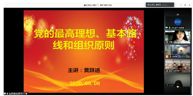 5月9日晚,beat365英国官方网站2020年发展对象培训班邀请beat365英国官方网站党委宣传委员、党政办公室主任黄跃进主讲《中国共产党的最高理想、基本路线和组织原则》专题讲座。