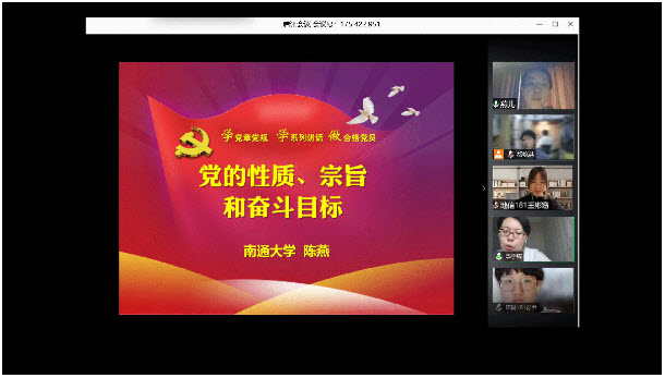 陈燕围绕“党的性质”和“党的宗旨”两大层面,详细阐述了中国共产党的性质包含了“两个先锋队”“一个领导核心”“三个代表”三个部分,着重强调了没有共产党就没有新中国。陈燕援引毛泽东同志的有关故事阐述了党的宗旨是全心全意为人民服务,并通过自身经历告诉大家:奋斗在不同岗位上的党员们的目标是一致的,那就是为中国人民谋幸福、为中华民族谋复兴。