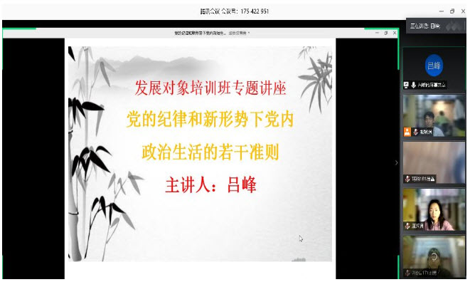 5月10日下午,beat365英国官方网站2020年发展对象培训班邀请beat365英国官方网站学工办副主任吕峰主讲《党的纪律和新形势下党内政治生活的若干准则》专题讲座。