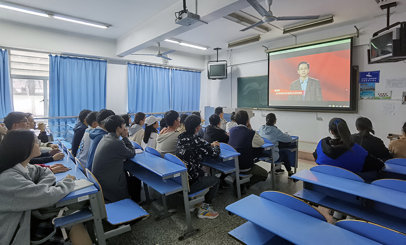 4月24日下午,beat365英国官方网站组织各年级学生代表集中观看“同上‘四史’思政大课”直播活动。