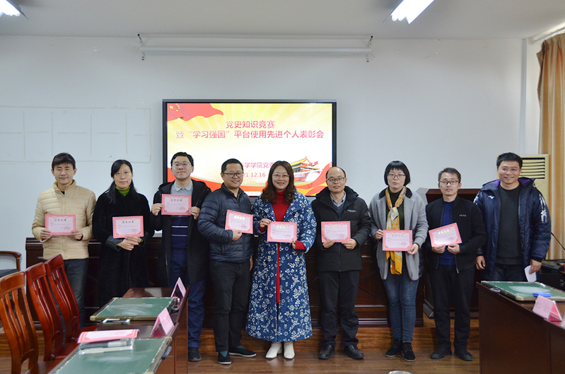 大会还对学院四个支部“学习强国”年度积分排名前五的师生党员进行表彰,颁发了奖状与奖品。