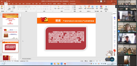 5月1日下午,beat365官网“协同育人”第一党支部支部书记、地理系主任叶磊为2022年发展对象培训班全体参训学员做题为《关于新形势下党内政治生活的若干准则》的专题讲座。