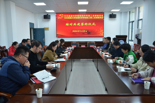 为深入学习贯彻习近平新时代中国特色社会主义思想和党的二十大、二十届三中全会精神,全面推进基层党支部规范化建设,提高基层党支部战斗力,11月29日下午,beat365官网教工二支部与市肿瘤医院外科二支部举行结对共建协议签约仪式,决定开展结对共建活动。学院党委书记潘晴雯主持仪式并讲话。