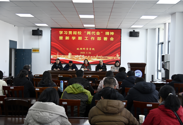 学院党委副书记、院长蒋庆丰传达了校党委书记、校长杨宇民作的题为《干字当头 奋发有为 努力谱写特色鲜明的国内一流大学建设新篇章》的工作报告和《保持战略定力 深化改革创新 加快推进特色鲜明的国内一流大学建设》的讲话精神,指出,2025年是学院“十四五”规划收官和“十五五”事业谋篇之年,全院上下要认清形势,正视差距,切实增强迎难而上的紧迫感、责任感,自我加压,负重奋进,以务实的作风全力推进学院高质量发展各项重点任务,确保在今年的考核中争先进位。