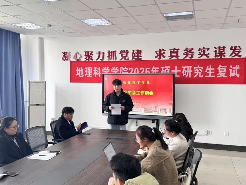 会上,师生们专题学习了习近平总书记在全国两会期间的重要讲话和全国两会精神,两位研究生代表结合专业分享了学习体会。2024级硕士研究生钱利乐同学表示,作为研究生会成员,今后将自觉以两会精神校准思想坐标,以更高标准要求自己,激发学习和科研热情,充分发扬骨干作用,在服务同学成长成才中彰显青年担当;2024级硕士研究生薛孟勇同学围绕习近平生态文明思想,提出将结合资源与环境专业实际,依托导师的科研项目开展深入研究,为建设美丽中国绿色生态贡献力量。钞振华老师总结肯定了学院研究生会过去一年的工作成效,特别肯定了研究生会在营造优良学风、促进科研创新、培育团结进取的校园文化等方面发挥的积极作用。随后,钞老师结合学校研究生思想政治教育的重点任务,对本学期的研究生会工作做了指导。